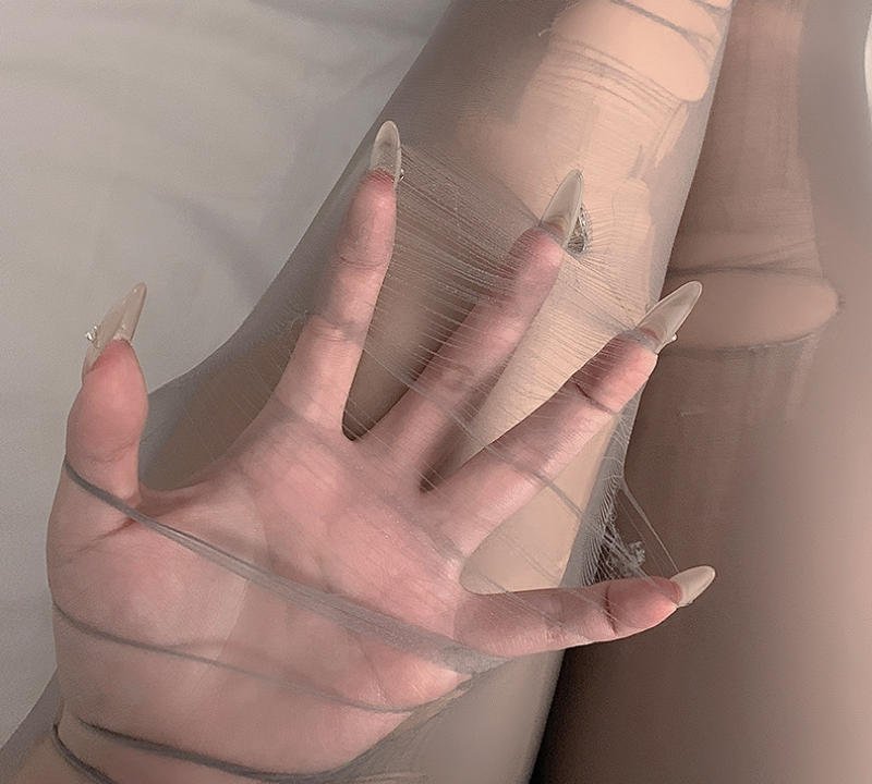 • The Oily Shiny Effect: The “油光” (oily shiny) finish that defines this collection is achieved through the unique light-refracting properties of the core-spun polyester. When light hits these stockings, it doesn’t just illuminate them; it makes them glow. They take on a liquid quality, as if your legs have been dipped in moonlight or coated in the finest silk.